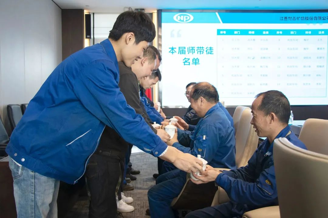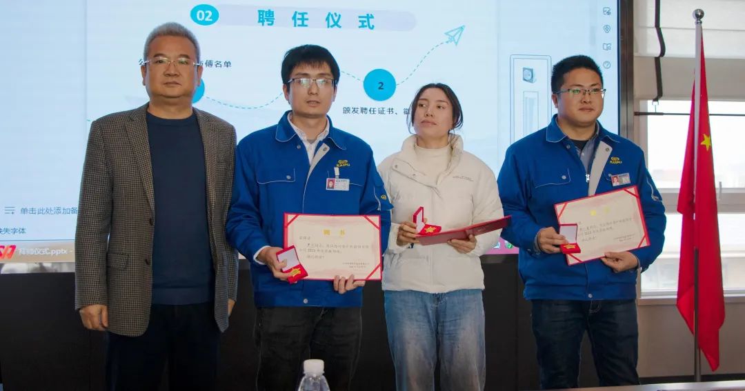 拜师仪式首先由总工程师潘庆宣布了师带徒在岗师傅名单,出席的公司向导为师傅揭晓了聘用证书、师傅特制徽章——证书红色醒目代表责任重大,徽章金黄色熠熠生辉代表生生不息。