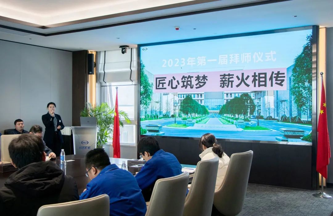 2023年3月28日,公司首届“匠心筑梦,薪火相传”拜师仪式在龙8头号玩家唯一官方网站游戏矿机五楼聚会室举行。总司理程胜、生产副总张国梁、总工程师潘庆、生产总监杨俊等向导出席,配合见证了这一庄重的时刻。